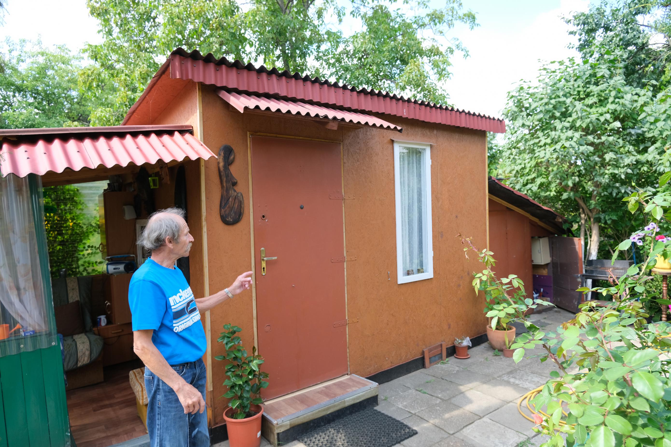 Z: Jak wiercili metro, to robili to pod naszym domkiem. Trochę tu, trochę u tego Tadka, ale najwięcej jest tutaj pod nami. Ze 3 miesiące pompowali wodę, która tutaj jest bardzo płytko i dlatego ta rura niebieska jest przeprowadzona przez ogród. Nie mogli jej puścić pod spodem, bo jest woda. Jak oni kręcili, to woda napłynęła pod nasz domek. Woda się zatrzymała, weszła wilgoć i podłoga mi zgniła. Ponoć metro jest 10 metrów pod nami.