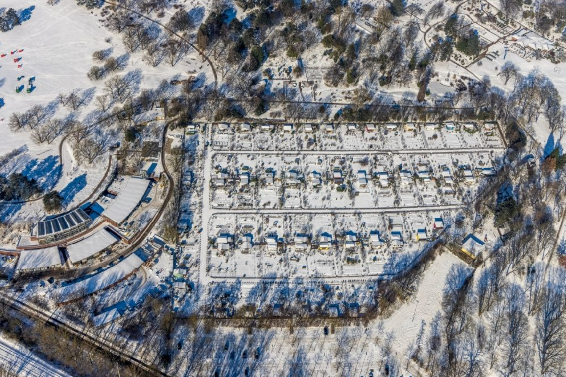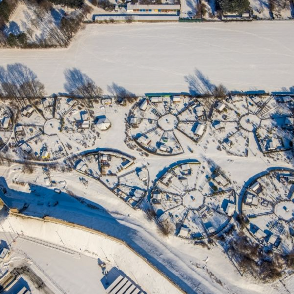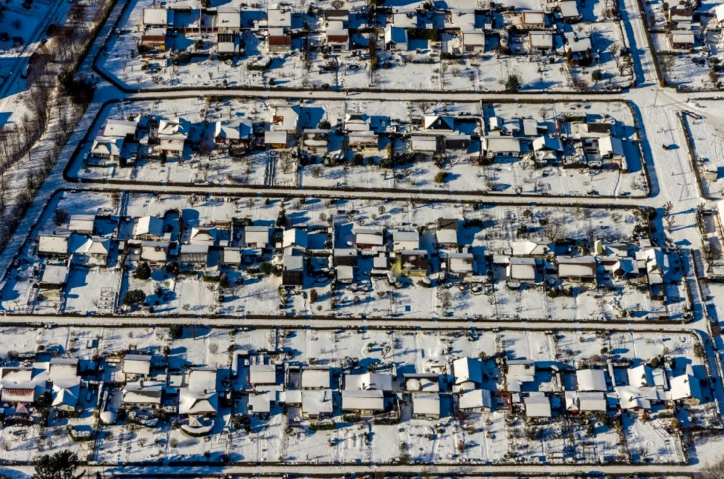 Podniebny fotograf Hans Blossey z Essen od lat fotografuje niemieckie miasta i miasteczka oraz wszystko to, co jest z nimi związane - oryginalne układy ulic, fabryki, osiedla, parki, cmentarze, a także pożary, samowole budowlane i inne zjawiska miejskie. Ta ptasia perspektywa nasuwa wiele przemyśleń na temat skali ludzkiej aktywności. Oku Hansa Blossey'a nie umknęły także ogrody działkowe. Kto zna Niemcy, chociażby z okien pociągu czy samolotu, ten wie, że działki to często spotykany element krajobrazu Niemiec. Podniebny fotograf z okien szybowca uchwycił wiele kolonii działkowych. Zobaczmy jak prezentują się zimą ogrody z Nadrenii Północnej-Westfalii.