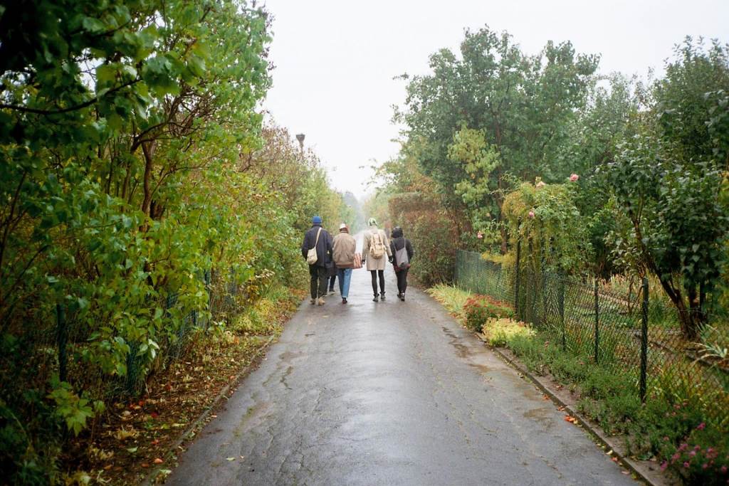 Pewnego razu, kolega zostawił w biurze w Domu Działkowca torbę z ważnymi rzeczami. Musieliśmy koniecznie odnaleźć kogoś, kto nam otworzy biuro. Padał deszcz, było zimno i ciemno. Jedyną osobą, która mogłaby nam je otworzyć była pani prezes. Jakimś cudem udało nam się ją odnaleźć w którymś z mokotowskich bloków. Intuicja była po naszej stronie. W taki sposób późnym zimowym wieczorem wylądowaliśmy w pustym ogrodzie i po chwili maszerowaliśmy grupą, w milczeniu szybkim krokiem przez ciemne i wilgotne alejki. W ciemności widzisz kształty, a karłowate domki zaczynają przypominać odklejający się od ziemi kiosk Frugo, albo stare łupiny, pod którymi skręcają się od wilgoci pradawne wydania Działkowca, pachnie grzybem. Odzyskaliśmy rzeczy i tak naprawdę nic szczególnego się nie wydarzyło. Odwieźliśmy panią do domu. Zapach wilgotnych alejek i pulsujące kształty, wryły mi się w pamięć i zapamiętały jako świetna przygoda na działce.