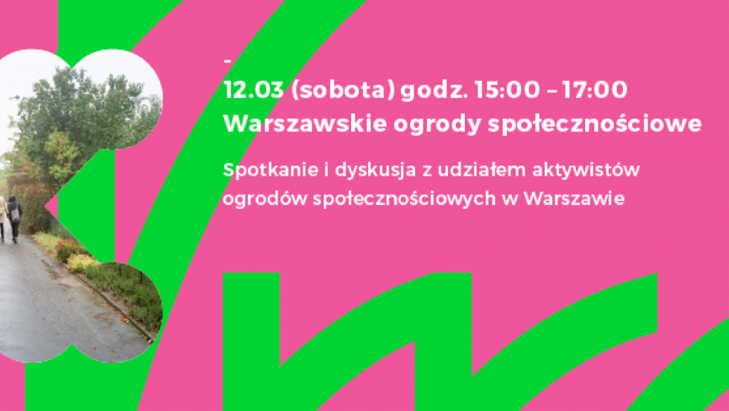 12 marca zapraszamy na spotkanie Warszawskie ogrody społecznościowe na ROD Obrońców Pokoju, poświęcone różnym formom współpracy miejskich ogrodników i ogrodniczek na wspólnie uprawianych działkach i ogródkach w Warszawie. Dowiemy się, jak zakłada się ogród w centrum miasta, dlaczego młodzi ludzie decydują się na kolektywne prowadzenie ogródków, co na nich uprawiają, jak dzielą się pracą i plonami. Podczas spotkania spróbujemy odpowiedzieć na pytanie, czy możliwa jest współpraca między ROD-ami a lokalną społecznością? Więcej informacji: FB