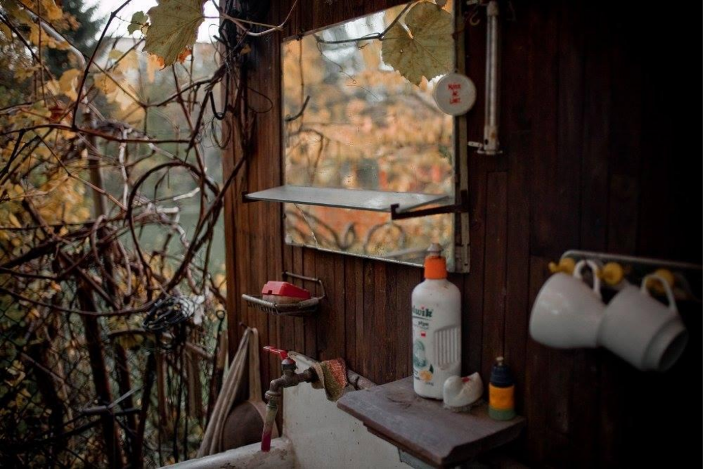 Wcześniej była ta lepianka po poprzednich właścicielach. Mąż sam zaprojektował i obyło się bez projektanta. Chciał postawić wyższy domek, ale wtedy nie było można budować wyższych. Z drugiej strony, po co nam wyższy, jak mamy piwnicę, strych, na którym trzymamy leżaki. Można powiedzieć, że to trzypiętrowy domek. Jest zrobiony z bali, w środku boazeria, a na zewnątrz jest obity deskami, dlatego w zimę jest całkiem ciepło.
