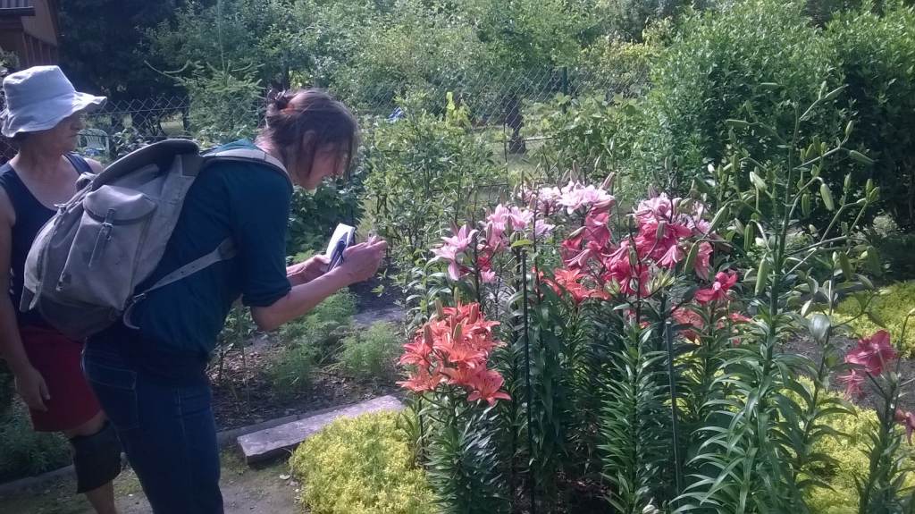 "Za dużo my mamy tych kwiatów, za dużo roboty. Jedno przekwita, przesycha i trzeba zbierać. Jak u nas zakwitły hiacynty to ludzie przystawali. Później tulipany i od razu wszystko rośnie na całej działce, bo nie idzie tego wykopać. Nie mamy takich rzeczy do zbierania, a żeby coś przyciąć, to przyjeżdża tutaj taki pan Roman. Mam też taką panią do pomocy, co jak trzeba pielić, to przyjdzie i pomoże nawet okna myć w domu. Teraz mi córka pomogła, ale pracuje i nie chce jej męczyć. Kiedyś hodowałem kapustę, a teraz to trochę kwiatków, trochę trawy. Tu są olbrzymie Rododendrony, mają po 45 lat. Czosnek ozdobny do sadzenia wyrasta wysoki i tworzy kule. Trzeba to sadzić tak jak tulipany na głębokość trzy długości cebuli."