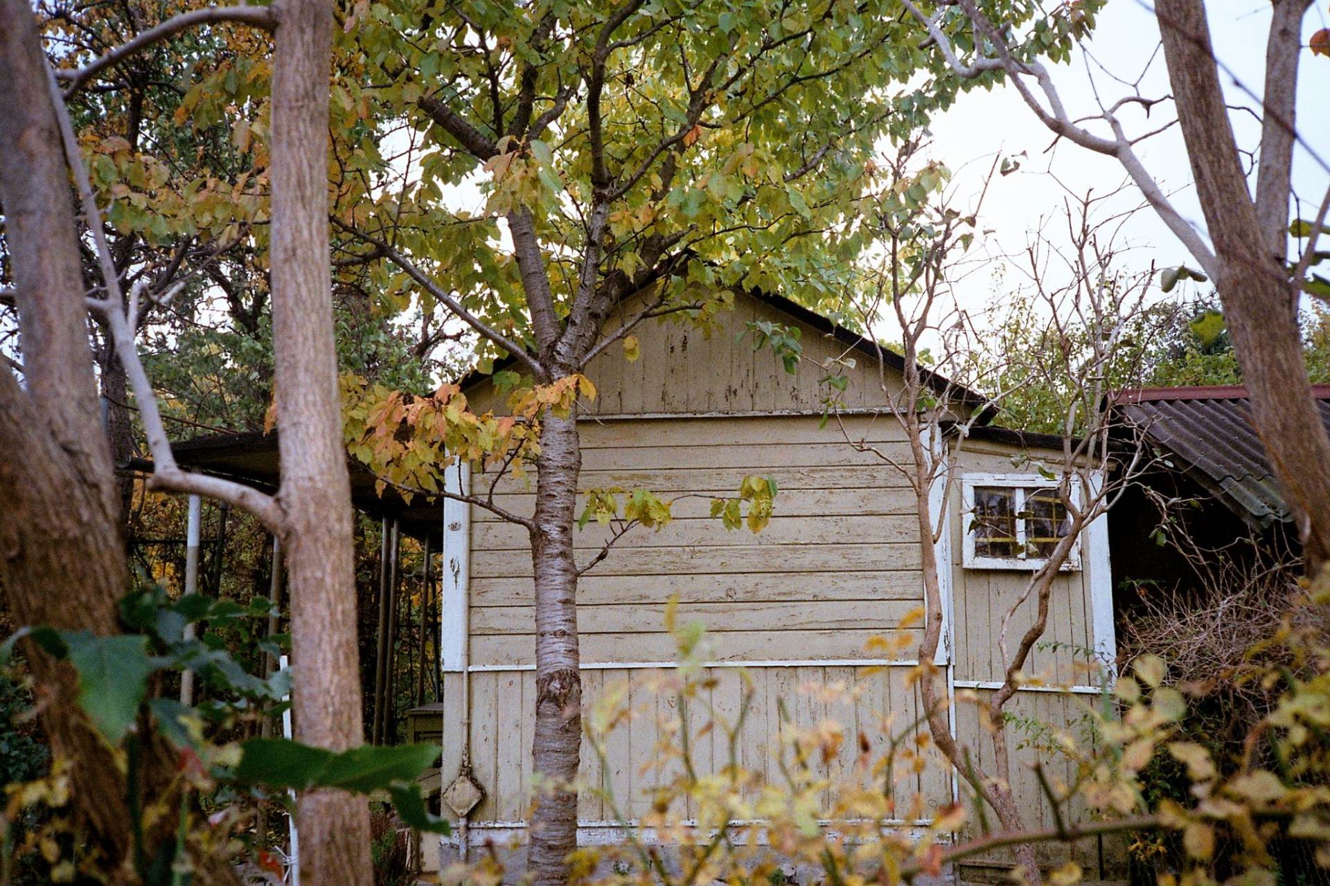 Nasz domek kiedyś wyglądał trochę inaczej. Nasza altanka i ta na działce obok są dwiema altankami bliźniaczymi. Teraz wyglądają inaczej bo my powiększyliśmy dach, który wcześniej kończył się tutaj na tej belce. Jak padało, to nie było gdzie usiąść. Teraz jak pada śnieg albo deszcz to możemy korzystać z domku. Złożyliśmy rynnę, żeby wodę zbierać i trochę tu otworzyliśmy przestrzeń, bo była ciasna. Pomalowaliśmy domek na kolor brązowy. Poza tym staram się mieć tu porządek. W związku z tym, że mamy tak blisko dom, nie mam potrzeby posiadania większej altany.