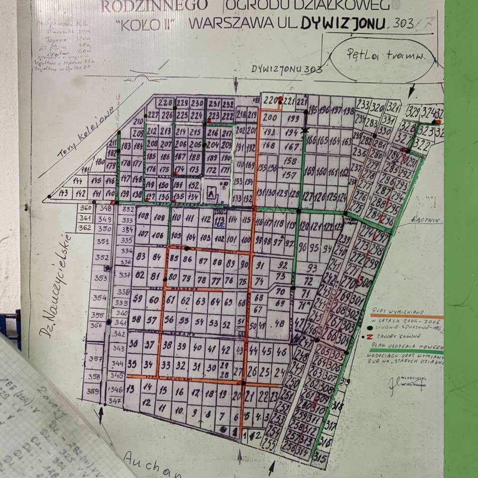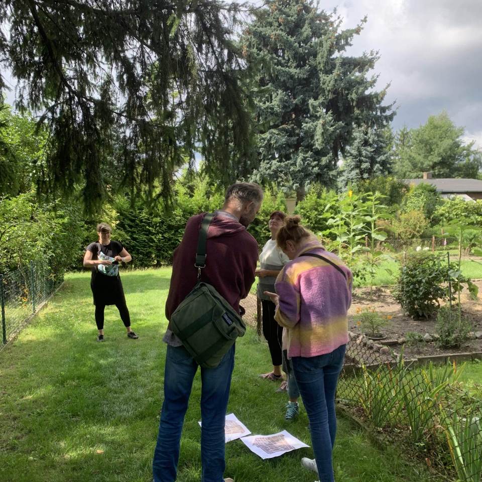 Mapowanie krajobrazu ROD Koło II w ramach warsztatu o pamięci roślin prowadzonego przez Darię Szarejko-Worobiej. Wydarzenie to część cyklu Pamięć krajobrazu Osiedla Koło II organizowanego przez Muzeum Szklanych Domów działające przy Wolskim Centrum Kultury.