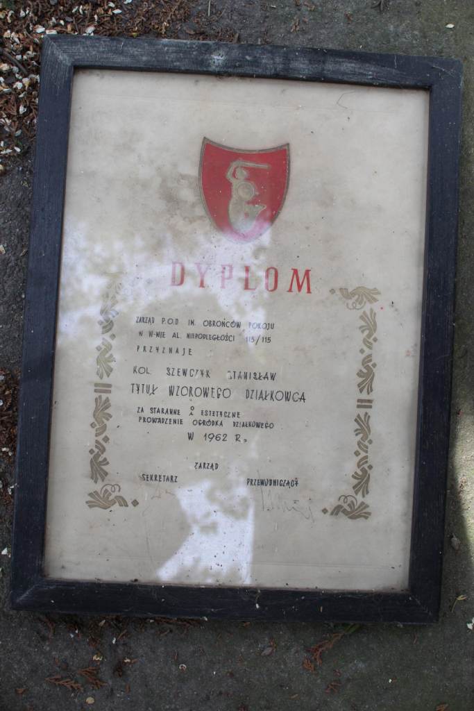 U mnie jest taki domek mikrusek z 1952 roku. Ten domek to kiedyś był dotąd i tu była taka wysunięta oszklona weranda. On nie mógł być wtedy większy, bo taki był standardowy metraż. Ja mam tutaj jeszcze wydanie Działkowca z lat 50-tych. A tu jest dyplom dziadka mojej żony. Dotał go w 1962 roku za dobre prowadznie ogrodu.